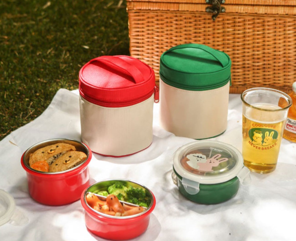 Made in Korea (Lunch Boxes): Stainless steel 304 + PP construction with silicone sealing lid, safe and durable